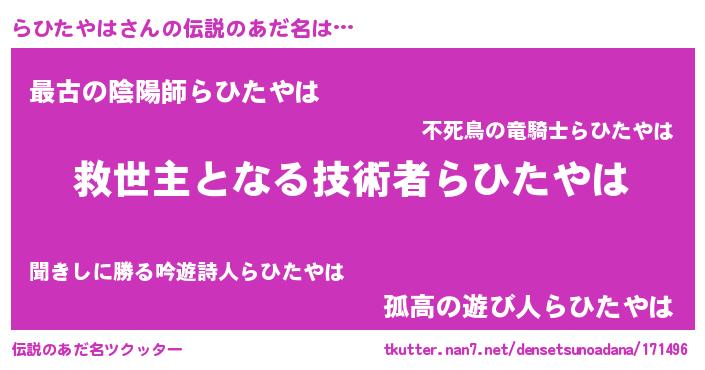 | ヒーロー風カッコイイあだ名 | 『慈愛の使者らひたやは』『仮面ラヒダー』 |