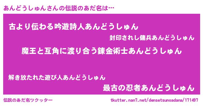 | 胡散臭い通販商品みたいなあだ名 | 『お金では代えられない隕石のかけら…その名も「あんどうしゅん」』 |