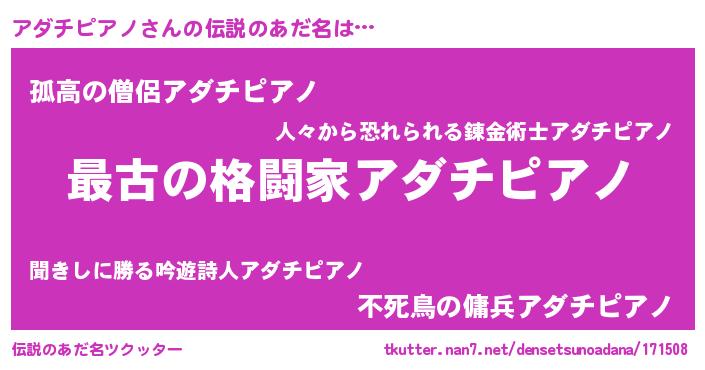 | 男性向けラノベタイトル風あだ名 | 『魔弾の王とアダチピアノ』 |