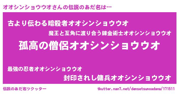 | ヒーロー風カッコイイあだ名 | 『黄金騎士オオ』 |