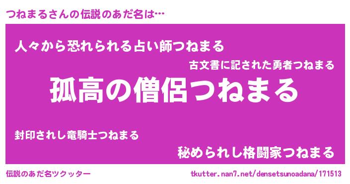 | 意味不明あだ名 | 『とにかく怪しいつねまる』 |