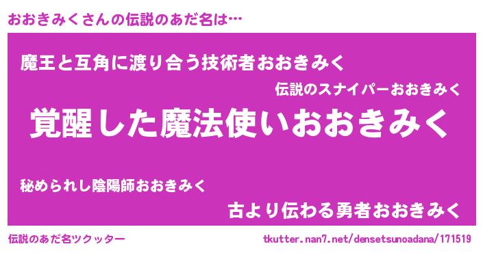 | ポケモン風あだ名 | 『ヒオオキミク』『オックウザ』 |