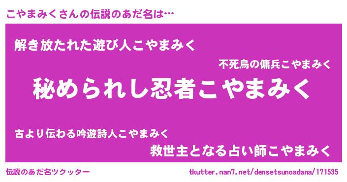 | 女子向けラノベタイトル風あだ名 | 『こやまみくの雑貨屋さん』 |