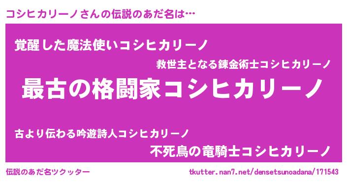 | ファンタジー風あだ名 | 『エターナルコシヒカリーノー』 |