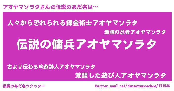 | 胡散臭い通販商品みたいなあだ名 | 『必ず成功する水晶球…その名も「アオヤマソラタ」』 |