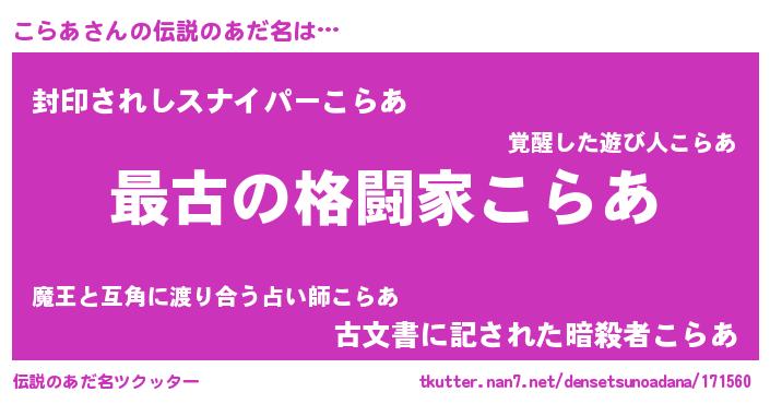 | 意味不明あだ名 | 『こらあフォーエバー』『自称こらあ』 |
