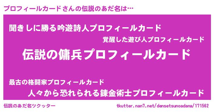 | 男性向けラノベタイトル風あだ名 | 『魔弾の王とプロフィールカード』 |