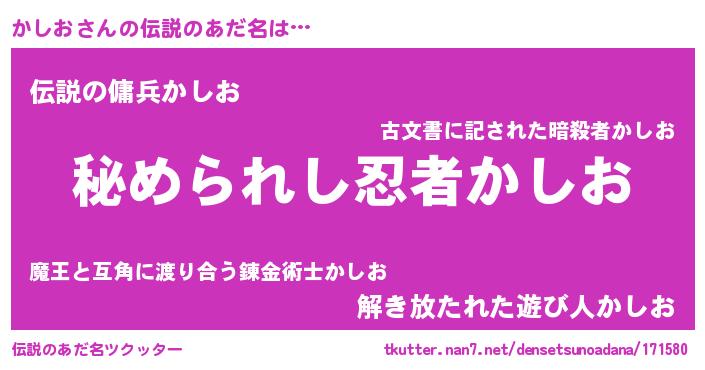 | 意味不明あだ名 | 『かしおフォーエバー』『自称かしお』 |