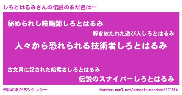 | 胡散臭い通販商品みたいなあだ名 | 『100人中100人が認めたマグネット磁石…その名も「しろとはるみ」』 |