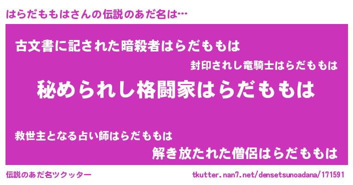 | 意味不明あだ名 | 『自称はらだももは』 |