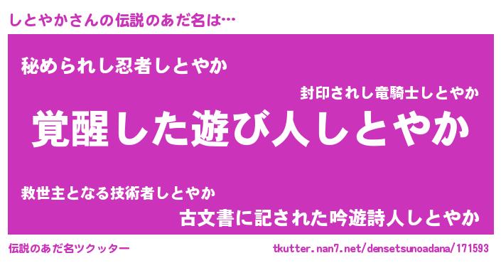 | ヒーロー風カッコイイあだ名 | 『天弓騎士シト』『超時空戦士シトヤカ』 |