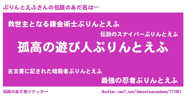 | 料理風あだ名 | 『ぷりんとえふのカルパッチョ風』 |