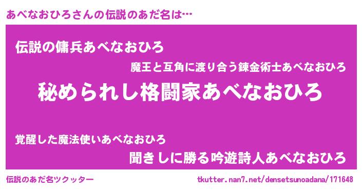 | 意味不明あだ名 | 『住所不定無職あべなおひろ(4歳)』 |