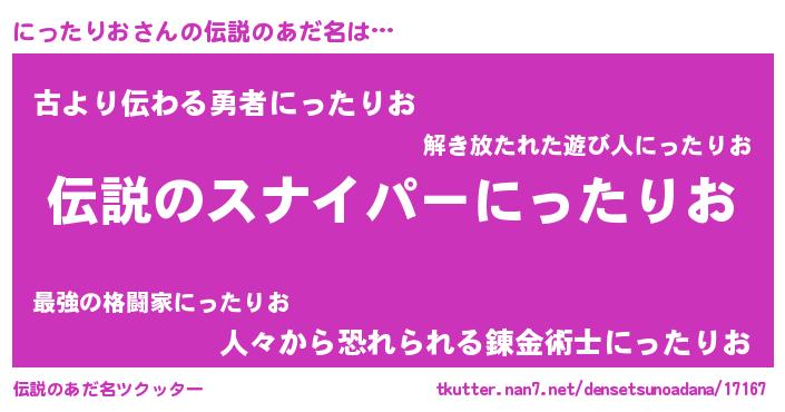 | 胡散臭い通販商品みたいなあだ名 | 『必ず成功する霊験あらたかなお札…その名も「にったりお」』 |