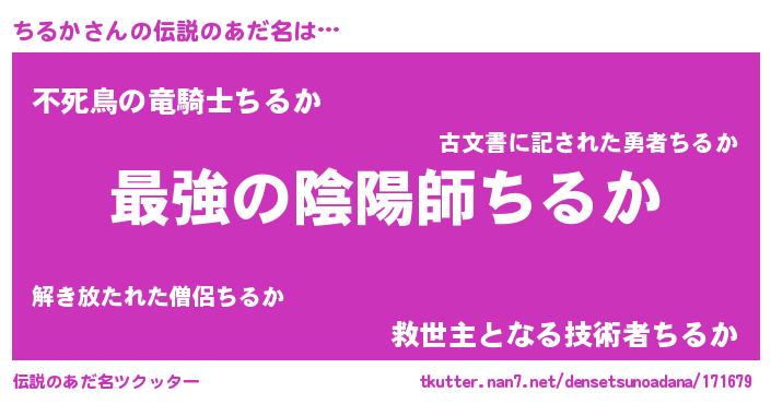 | ヒーロー風カッコイイあだ名 | 『ウルトラちるかマン』『スーパーチルカ』 |