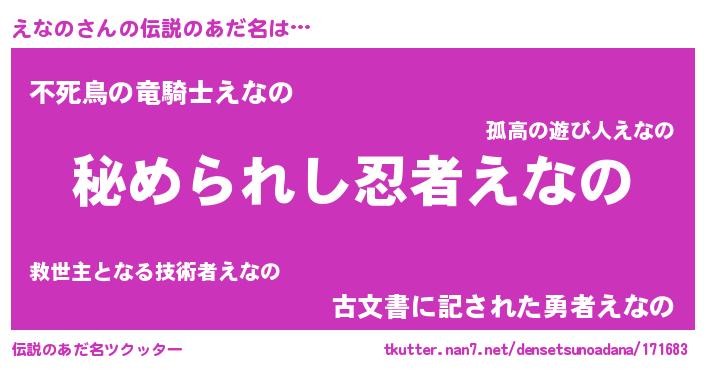 | 女子向けラノベタイトル風あだ名 | 『えなのが死なない童話 林檎のえなのの診療簿』 |