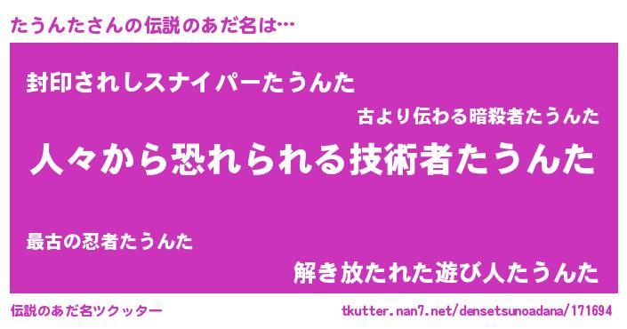 | ヒーロー風カッコイイあだ名 | 『正義の使者たうんた』『銀牙騎士タウ』 |