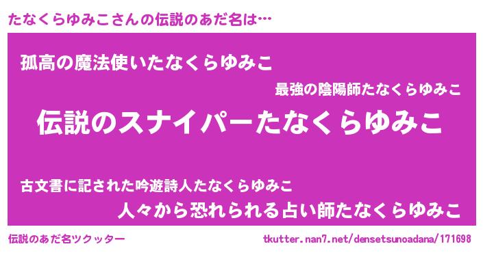 | ヒーロー風カッコイイあだ名 | 『スーパータナクラユミコ』 |