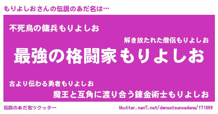 | 意味不明あだ名 | 『住所不定無職もりよしお(7歳)』 |