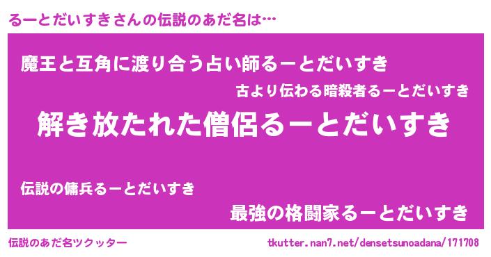 | 意味不明あだ名 | 『とにかく怪しいるーとだいすき』 |