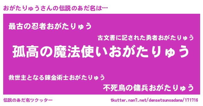 | 胡散臭い通販商品みたいなあだ名 | 『信頼と実績のサプリメント…その名も「おがたりゅう」』 |