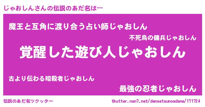 | ヒーロー風カッコイイあだ名 | 『天弓騎士ジャ』『正義の使者じゃおしん』 |