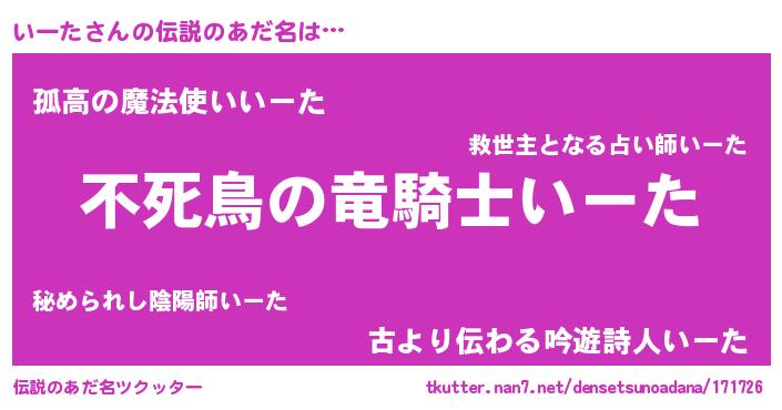| 意味不明あだ名 | 『ペロリンいーた』『永久保存いーた』 |