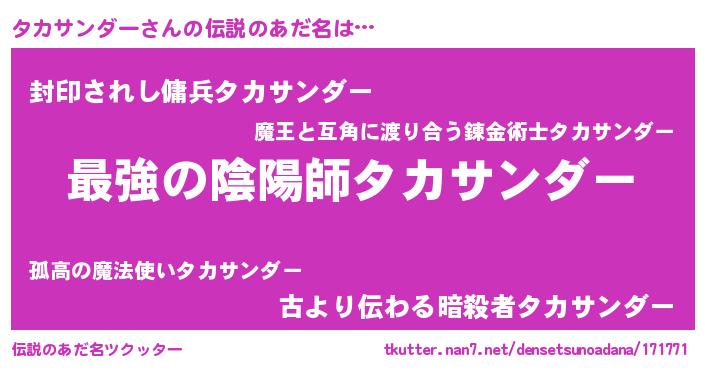 | ヒーロー風カッコイイあだ名 | 『ウルトラタカサンダーマン』 |