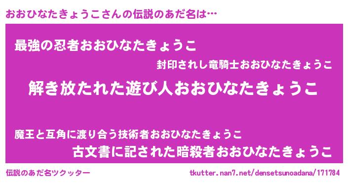 | 意味不明あだ名 | 『とにかく怪しいおおひなたきょうこ』 |