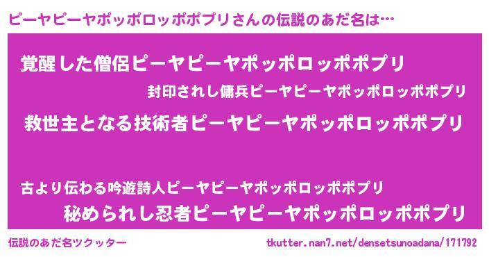 | ヒーロー風カッコイイあだ名 | 『慈愛の使者ピーヤピーヤポッポロッポポプリ』 |