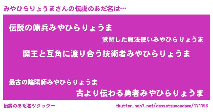 | ヒーロー風カッコイイあだ名 | 『友情の使者みやひらりょうま』 |