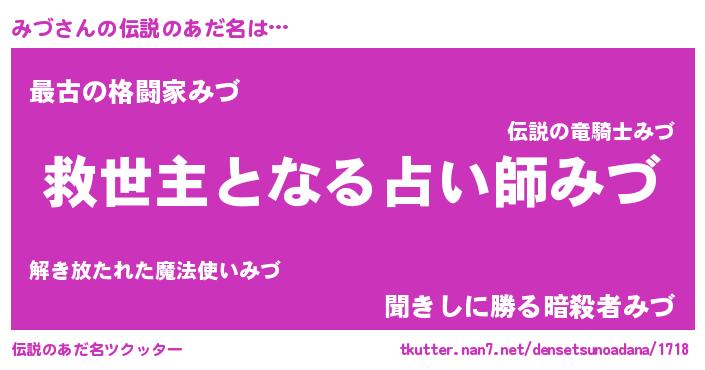 | 男性向けラノベタイトル風あだ名 | 『ノーゲーム・ノーミヅ』 |