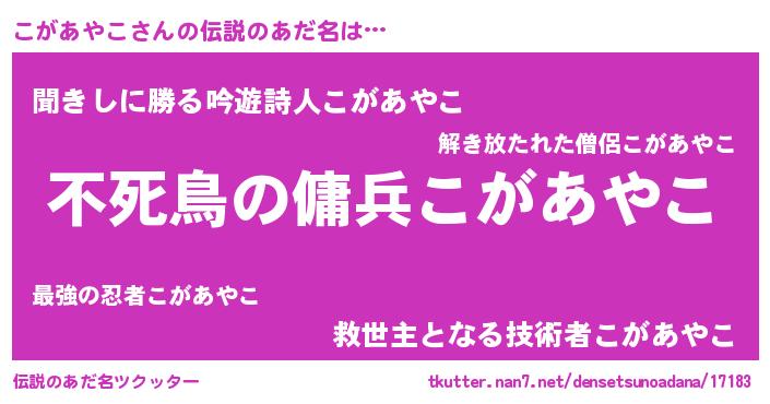 | 意味不明あだ名 | 『ペロリンこがあやこ』『自称こがあやこ』 |