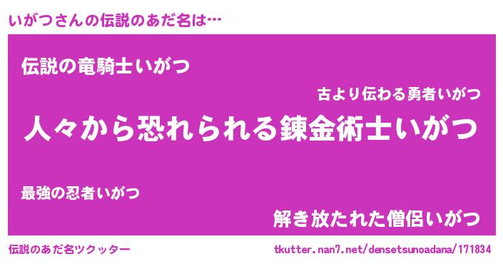 | 女子向けラノベタイトル風あだ名 | 『いがつ夫妻のなれそめ』『闇のいがつ』 |