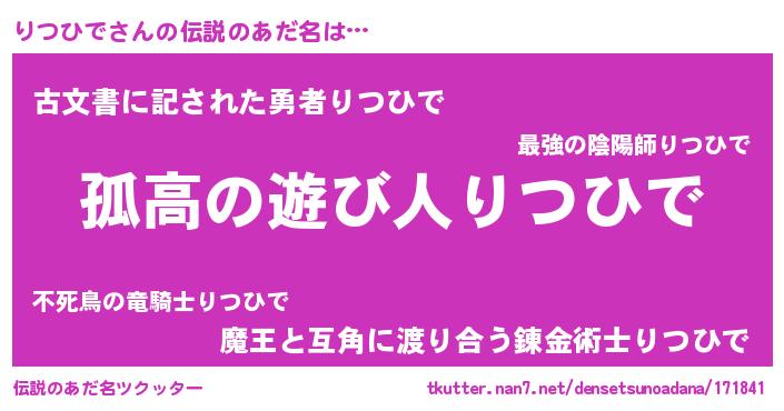 | ヘコむあだ名 | 『りつっちょ』『りつひで(苦笑)』 |