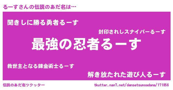| 男性向けラノベタイトル風あだ名 | 『るーすに滅ぼされるだけの簡単なお仕事です』 |