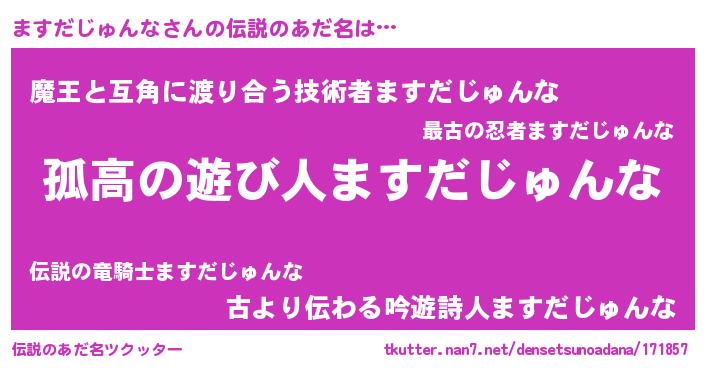 | 意味不明あだ名 | 『とにかく怪しいますだじゅんな』 |