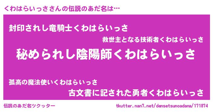 | 意味不明あだ名 | 『くわはらいっさフォーエバー』 |