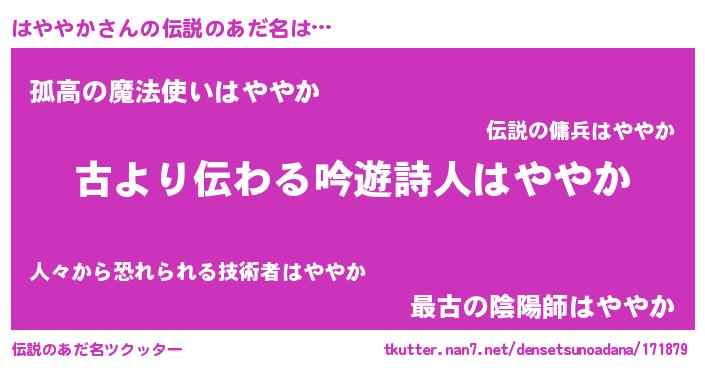| 意味不明あだ名 | 『永久保存はややか』『自称はややか』 |