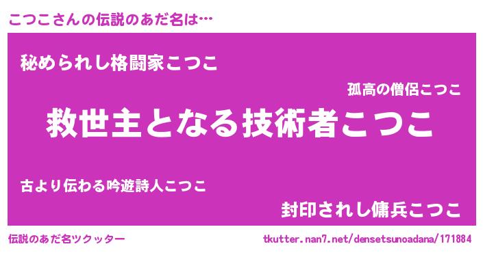 | 意味不明あだ名 | 『住所不定無職こつこ(4歳)』『自称こつこ』 |