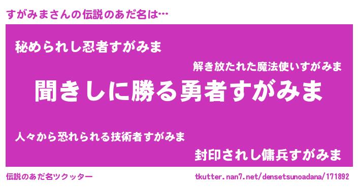 | 意味不明あだ名 | 『永久保存すがみま』『自称すがみま』 |