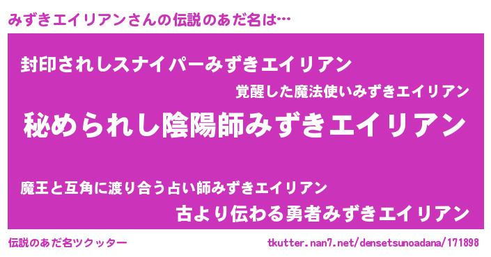 | 意味不明あだ名 | 『みずきエイリアンフォーエバー』 |