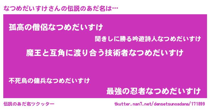 | 女子向けラノベタイトル風あだ名 | 『なつめだいすけ恋絵巻』 |