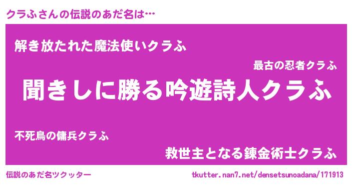 | 意味不明あだ名 | 『永久保存クラふ』『自称クラふ』 |