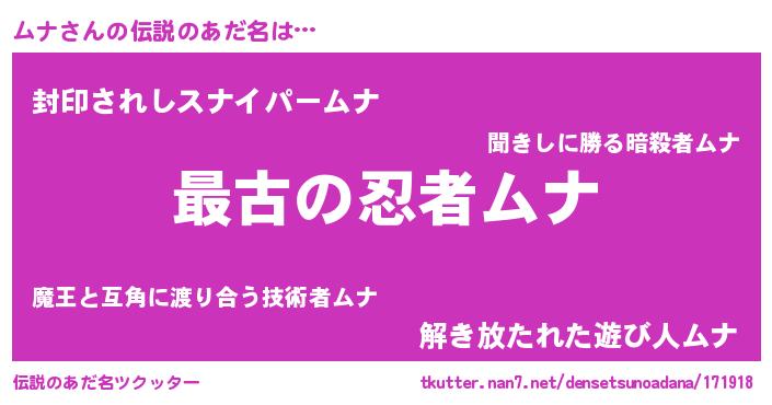 | 男性向けラノベタイトル風あだ名 | 『転生したらムナだった件』 |
