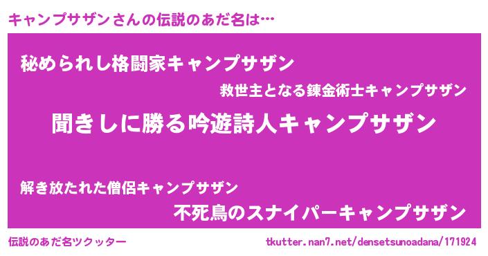 | 意味不明あだ名 | 『自称キャンプサザン』 |