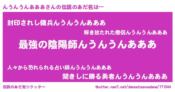 | 男性向けラノベタイトル風あだ名 | 『この素晴らしい世界にんうんうんあああを!』 |