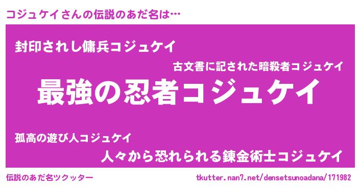 | 意味不明あだ名 | 『住所不定無職コジュケイ(59歳)』 |
