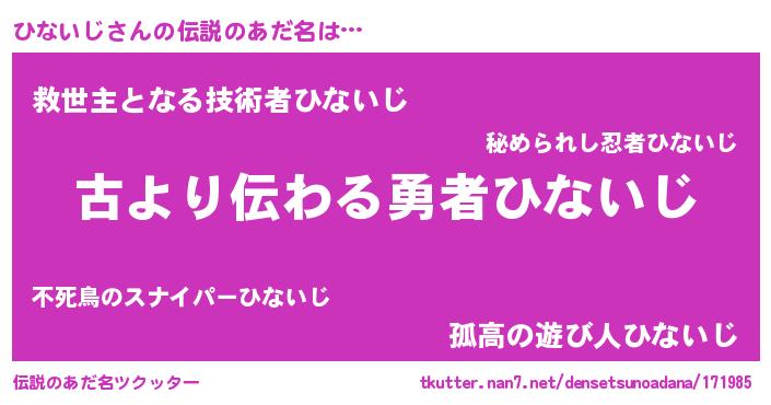 | 男性向けラノベタイトル風あだ名 | 『ひないじという概念が存在しない退屈な世界 』 |
