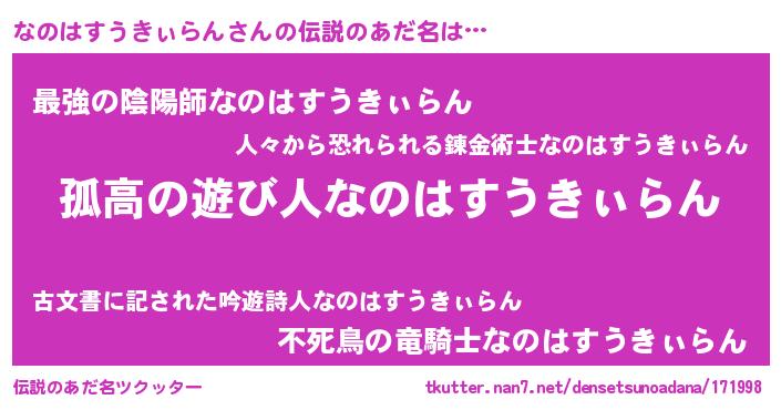 | 意味不明あだ名 | 『とにかく怪しいなのはすうきぃらん』 |